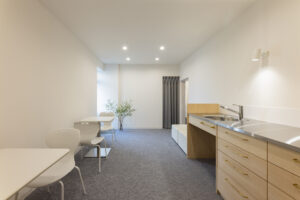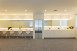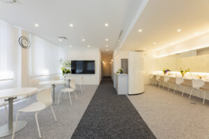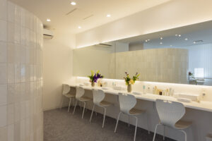計画建物は木造よりも容易に大空間を確保できるメリットをもった重量鉄骨造の平屋建てであった。構造補強も必要がないことから「美肌美容サロン」として様々な機能を一つの大空間にまとめられる理想的且つ絶好の場所であった。しかし、移転先が決まってから工事着工まではおよそ1ヵ月程度の時間しかなく、クライアントとは怒涛の日々を一緒になって走り抜けたのが完成した今となっては良い思い出である。