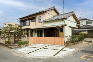 浜松市の中でもアサリや鰻など漁業が盛んな浜名湖周辺エリア。そんな漁師町の住宅街で築40年の戸建て住宅を2世帯住宅へとアップデートするリノベーション案件。