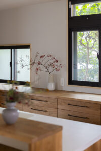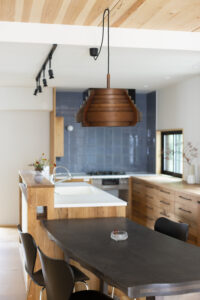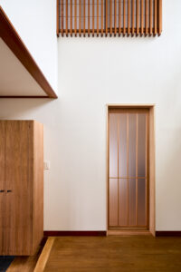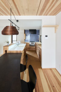 2世帯住宅ならではの抑えなければならないポイントは、家族間のほどよい距離感だ。世帯ごとにそれぞれのプライベートスペースを持たせながらも、最も大切な食卓(LDK)は一緒になって囲み、まさに“一家団欒”が可能な間取りへと大胆に変更。目に見える物理的な距離感だけではなく、家族それぞれの心理的な細部に至る部分にまで計画に組み込むことで、お互いを見守り合えるようなほどよい距離感と居心地の良さが感じられる住まいを目指した。