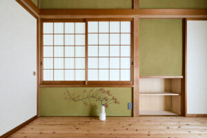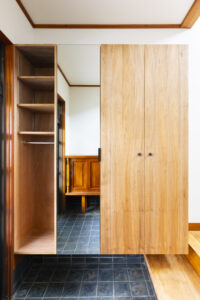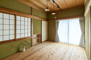 息子さまの結婚や子育てをきっかけに、実家へご夫婦とお子様1人が戻ってくることになったところから計画がスタートした。住まい手はご相談いただいた当初より“丁寧な改修設計”と“質の伴った工事”で安心・安全な「実家リノベーション」を行い、今後も長きにわたって住み続けることができる住まいを希望していた。そんな中、改修設計前には2日間に渡り小屋裏(天井裏)と床下へ潜り、“住宅医”による徹底した詳細調査を実施。耐震性・安全性の確保を第一にした基礎補強計画や耐震設計、そして柱や梁・既存土壁を可能な限り残しながら自然素材を使って快適な暮らしができるような断熱改修まで含めて提案を行った。